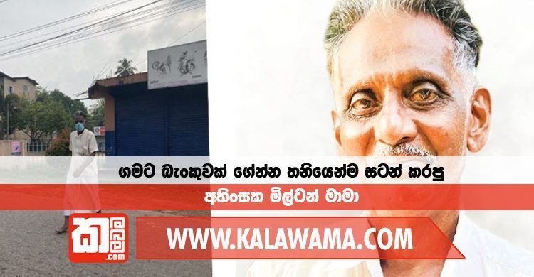 දූනගහට ආපු ජංගම රථය අතිශය කාර්යබහුලත්වයට පත්වුණා. අපි ඒක දන්නේ එහෙම. සමහර විට මේක බැංකුවෙ පාර්ශ්වයෙ කතාව මීට වඩා වෙනස් වෙන්න පුළුවන්. හැබැයි මිල්ටන් මාමා සහ මේ සිදුවීම දිහා බලාගෙන හිටපු මිනිස්සු කියන්නේ ඒ විදියට. ටිකෙන් ටික බැංකුවක් දූනගහ හැදෙන තැනට පත්වුණා. ඔන්න මිල්ටන් මාමගෙ පැත්තවත් නොබලපු සමහර ව්යාපාරිකයො තමන්ගෙ ගොඩනැගිලි බැංකුවට දෙන්න සූදානම් වුණා. දූනගහට බැංකුවක් කියන කතාව හැමෝටම ආරංචි වුණා. මිල්ටන් මාමාට වැඩ වැඩි වුණා. මිල්ටන් මාමා එහෙටයි මෙහෙටයි දුවමින් ආයෙත් බැංකුව සඳහා ගොඩනැගිලි හොයන්න පටන් ගත්තා. දූනගහ බැංකුවක් සඳහා ගොඩනැගිල්ලක් සූදානම් වුණා. ජංගම රථය එන එකත් නතර වෙලා හදිසියේම දූනගහට බැංකුවක් ආවා. දූනගහ බැංකුව විවෘත කළා. විවෘත කරපු දවසෙ මිල්ටන් මාමා පරණ පුරුදු සුදුපාට සරමයි කමිසයයි ඇඳගෙන බැංකුවට ඇවිල්ලා හිටියා. හැබැයි මිල්ටන් මාමට තෑග්ගකුත් හම්බවුණා. මිල්ටන් මාමාට දූනගහ මිනිස්සුන්ගෙ ගෞරවය හිමිවුණා. ඒගොල්ලො විශේෂ කතාවක් එහෙම පවත්වලා මිල්ටන් මාමාට ස්තුති කළා. මිල්ටන් මාමාට පොඩි පොඩි තෑගි හැරෙන්න වෙන මුකුත් ලැබුණේ නෑ. හැබැයි මිල්ටන් මාමාට අවශ්යම දේ ලැබුණා. ඒ තමයි ගමට බැංකුවක්. මේ බැංකුවෙ තාමත් මිල්ටන් මාමාට එකවුන්ට් එකක් නෑ. මිල්ටන් මාමාගේ බැංකු කාඩ් එකක් නෑ. මිල්ටන් මාමා ඒ.ටී.එම්. යන්ත්ර පාවිච්චි කරන්න දන්නෙ නෑ. හැබැයි තාමත් මිල්ටන් මාමා බැංකුව ගාවට යනවා. ගිහින් බලලා එනවා. මේ අස්සේ තමයි කොවිඩ් වසංගතය ආවෙ. කොවිඩ් වසංගතය ආවත් එක්කම හුඟක් දෙනකුට නගරයෙන් පිට යන්න බැරි වුණා. ගමෙන් පිට යන්න බැරි වුණා. සීමා මායිම් වැටුණා. ඒ අස්සෙත් ගමේ මිනිස්සු සියලු දෙනා පයින් ඇවිල්ලා බයිසිකලේකින් ඇවිල්ලා, ත්රීවීල් එකකින් ඇවිල්ලා සල්ලි අරගෙන යන්න පටන් ගත්තා.