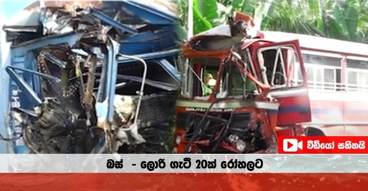 කොළඹ අවිස්සාවේල්ල මාර්ගයේ හංවැල්ල ඇඹුල්ගම ප්රදේශයේ දී ප්රදේශයේ දී අද (9) අළුයම ලොරි රථයක් සහ ලංගම බස් රථයක් ගැටීමෙන් සිදු වූ අනතුර පුද්ගලයන් 20 දෙනකු තුවාල ලබා ඇති බව පොලිසිය පවසයි.