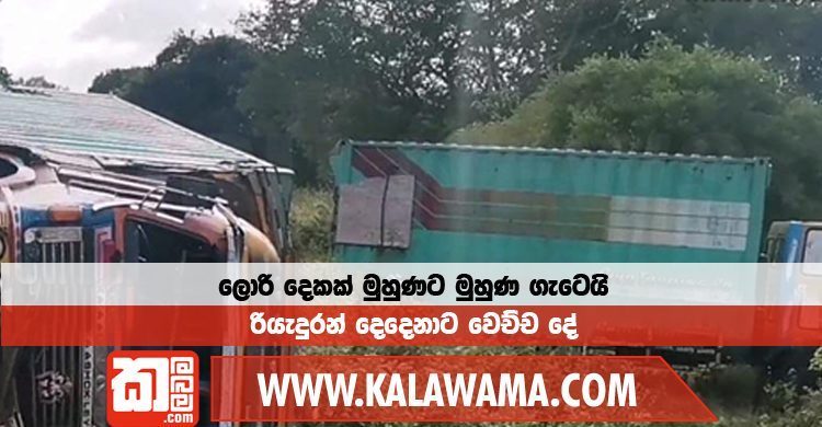 වවුනියාවේ පරනාට්ටකල් ප්රදේශයේදී ලොරි දෙකක් මුහුණට මුහුණ ගැටීම නිසා එම ලොරි දෙක ඇළකින් පහළට පෙරළී යාම නිසා රියැදුරන් දෙදෙනාම බරපතළ තුවාල ලබා ඊයේ (22) වවුනියාව මහ රෝහලට ඇතුළත් කොට තිබෙනවා.