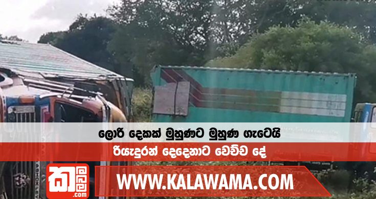 වවුනියාවේ පරනාට්ටකල් ප්රදේශයේදී ලොරි දෙකක් මුහුණට මුහුණ ගැටීම නිසා එම ලොරි දෙක ඇළකින් පහළට පෙරළී යාම නිසා රියැදුරන් දෙදෙනාම බරපතළ තුවාල ලබා ඊයේ (22) වවුනියාව මහ රෝහලට ඇතුළත් කොට තිබෙනවා.