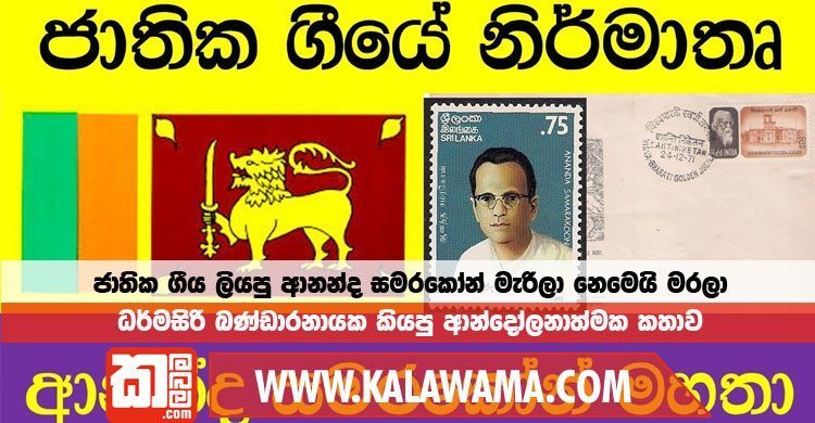ශ්රී ලංකාවේ ජාතික ගීය රචනා කළ ආනන්ද සමරකෝන් මහත්තයා මිය ගියේ සියදිවි නසා ගැනීමක් හින්දා කියන එක ප්රසිද්ධ කාරණයක්. ඒත් ධර්මසිරි බණ්ඩාරනායක මහත්මයා කියන්නේ ඒක සියදිවි නසා ගැනීමක් නෙවෙයි ඝාතනයක් කියලයි. ජාතික ගීයේ රචකයාව ඝාතනය කළ රටක් ගැන අපි අහලා නැහැ. මේ කතාවේ සංවේදී බව වැඩි වෙන්නේ ඒ හින්දමයි.