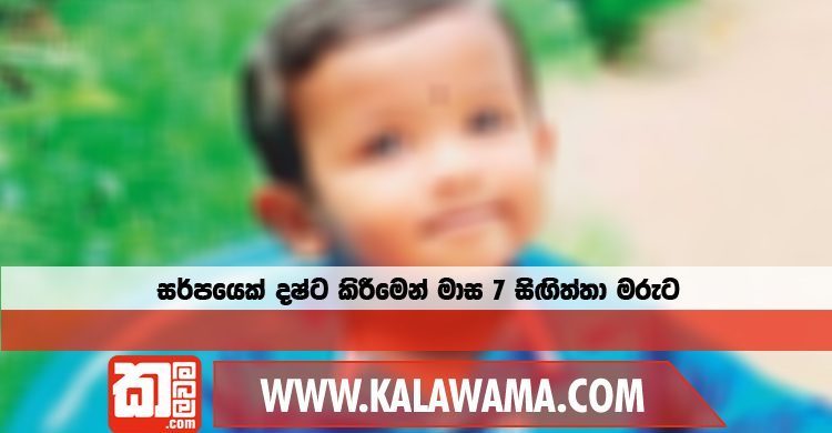 කිළිනොච්චිය ධර්මපුරම් ප්රදේශයේ අවුරුද්දකුත් මාස හතක් වයස සිඟිත්තෙකු සර්පයෙකු දෂ්ට කිරීමෙන් පසු ඉකුත් 16 දා මියගොස් තිබේ.