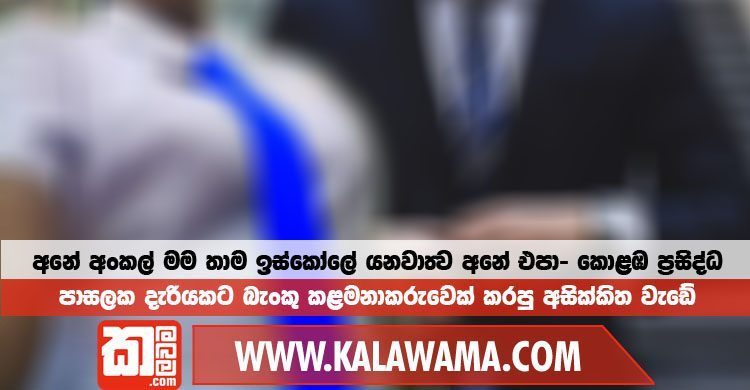 කොළඹ ප්රසිද්ධ පාසලක 14 හැවිරිදි දැරියක් සමග සබඳතාවයක් පවත්වාගෙන යමින් අඳුරු වීදුරු සහිත ජිප් රථයෙන් ප්රසිද්ධ රථගාල්වලට රැගෙන ගොස් ලිංගික අතවර කළ බව කියන 50 හැවිරිදි පෞද්ගලික බැංකු කළමනාකරුවකු අත්අඩංගුවට ගත් බව බම්බලපිටිය පොලිසිය කියයි.