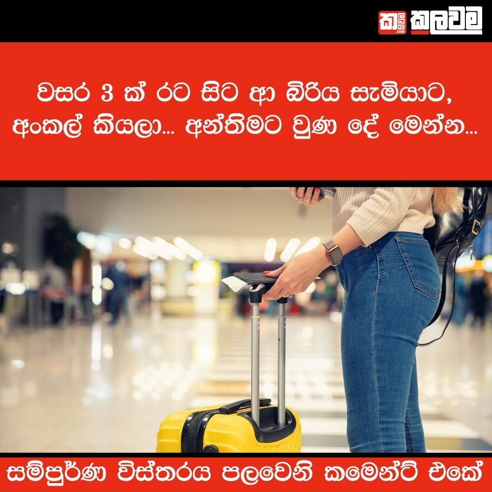 මැදපෙරදිග රටක ගෘහ සේවිකාවක වශයෙන් සේවය කොට සිය නිවසට පැමිණි දා තම සැමියාට ”අංකල්” යැයි කියා ආමන්ත්රණය කළ කතකගේ පවුල් ජීවිතය අනූනවයෙන් බේරුණ පුවතක් වාර්තා වෙනවා.