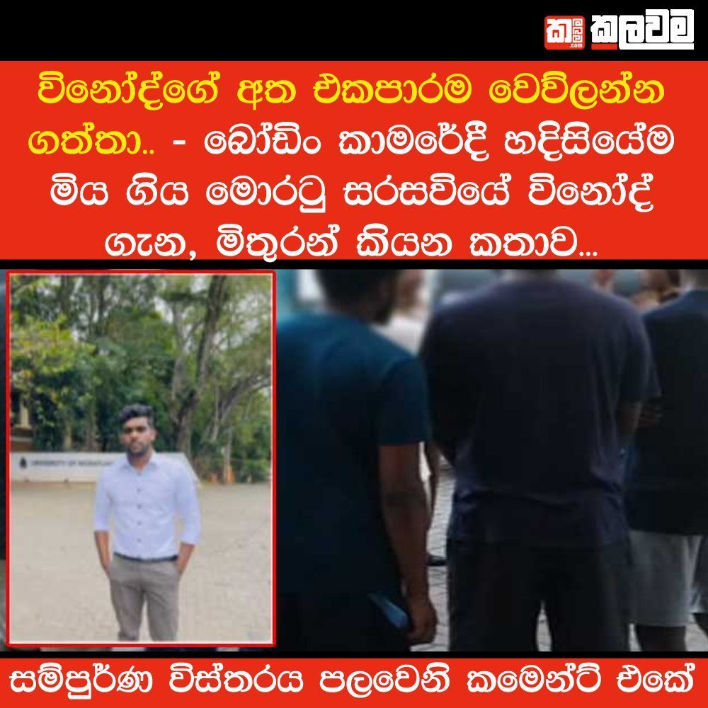මෙලෙස මියගොස් ඇත්තේ මොරටුව, මෝල්පේ, ජයමාවත ප්රදේශයේ තාවකාලිකව පදිංචිව සිටි හාලිඇළ, උණුගොල්ලවත්ත, අඟුරුමලේ කොටසේ පදිංචිව සිටි සතාසිවම් විනෝද් නමැති වාස්තු විද්යා පීඨයේ අවසන් වසරේ අධ්යාපනය ලැබූ සිසුවෙකි.