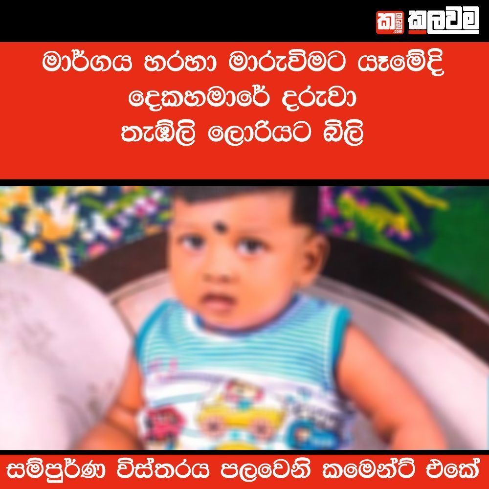 මෙම දරුවා මාර්ගය හරහා මාරුවිමට යෑමේදි තැඹිලි පටවාගෙන පැමිනි ලොරියක දරුවා වැදි තිබේ.