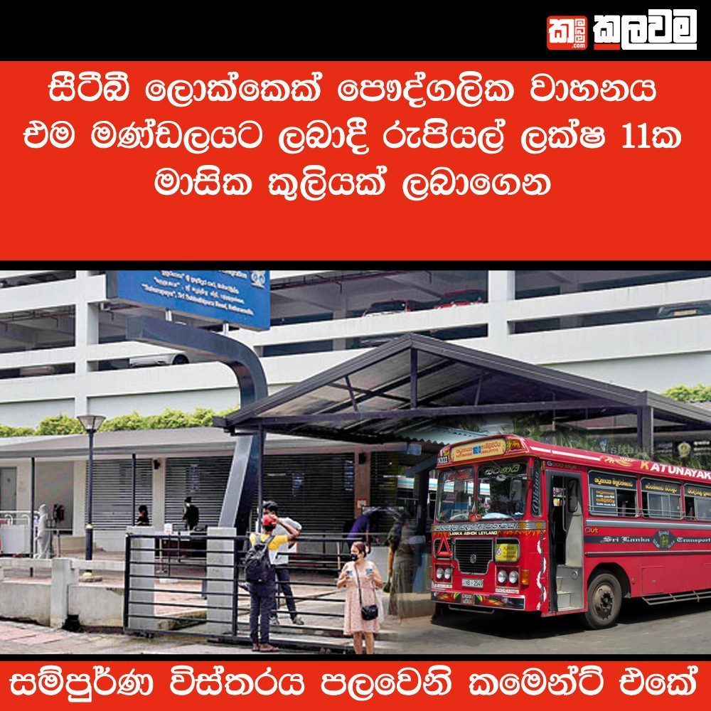 ශ්රී ලංකා ගමනා ගමන මණ්ඩලයේ නිලධාරියකු තමන්ගේ පෞද්ගලික වාහනය එම මණ්ඩලයට ලබාදී රුපියල් ලක්ෂ 11ක මාසික කුලියක් ලබාගෙන ඇතැයි ජාතක විගණන කාර්යාලය නිකුත් කළ වාර්තාවක සඳහන් වේ.