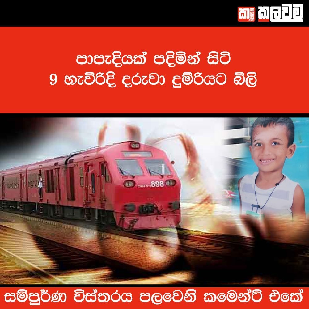 විනෝදයට පාපැදියක් පදිමින් සිටි 9 හැවිරිදි දරුවකු මොරටුව මුරවත්ත දුම්රිය හරස් මාර්ගය අසලදී දුම්රියක ගැටී මිය ගොස් ඇතැයි මොරටුව මූලස්ථාන පොලිසිය කියයි.
