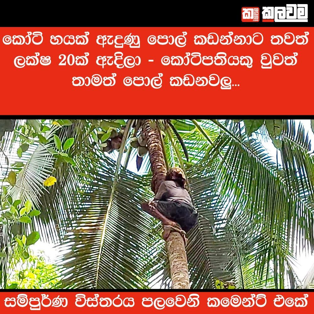දුර්වර්ණ වී ගිය කොට කලිසමකින් සහ ටී ෂර්ට් එකක් හැඳගෙන පොල් කඩන පිහිය ද රැගෙන හිමිදිරි උදෑසනම නිවෙසින් මෙම කෝටිපති පොල් කඩන්නා පිටව යන්නේ කුලියට පොල් කැඩීම සඳහාය.