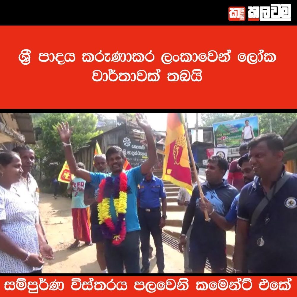 තෙවනුව ශ්රි පාද උඩ මළුවේ සිට ශ්රි පාද පලාබද්දල මාර්ගය ඔස්සේ පහලට බැස එම මාර්ගයෙන්ම යලිත් ශ්රි පාද උඩ මළුව වෙත ළගා වි සිව්වනුව ශ්රි පාද උඩ මළුවේ සිට ශ්රි පාද මාලින්බොඩ මාර්ගය මාලින්බොඩ දක්වා බැස එතැන් සිට එම මාර්ගයෙන්ම ශ්රි පාද උඩ මළුව වෙත ඊයේ (09) දින පස්වරු 1.15 පමණ ශ්රි පාද උඩ මළුව වෙත ළගා වි ශ්රි පාද උඩ මළුවේ සිට යලිත් නල්ලතන්නිය දක්වා පැය 1 විනාඩි 40 ක් තුල නල්ලතන්නිය වෙත පැමිණ සිය වාර්තාව පිහිටුවිමට සමත් වුණා.