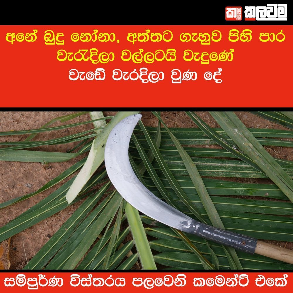 “හ්ම්, කිතුල් ගහට ගිය මිනිහටත් කියන්න දෙයක් තිබුණලුනේ… යනවා යන්න මෙතනින් මගෙ දෑහැට නොපෙනී.” කපාපු පොල් අතු ටිකත් එසේම තිබියදී ආපසු නොබලාම හේ ගෙදරටම දිව ගියාලු.