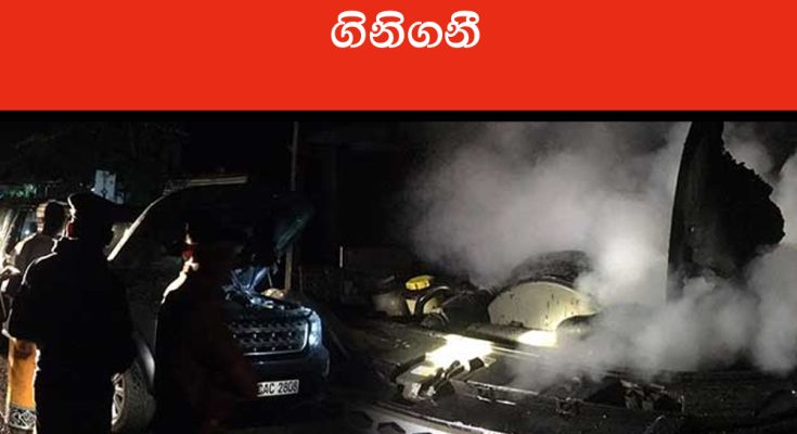 රාජ්‍ය ඇමති චාමර ගමන්කළ රථය ගිනිගනී