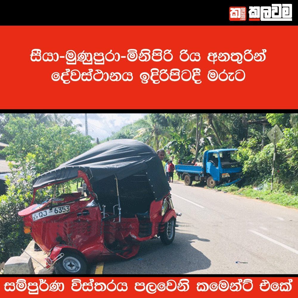 ඇල්පිටිය අවිත්තාව ප්රධාන මාර්ගයේ කැටපළ ක්රිස්තු දේවස්ථානය ඉදිරිපිටදී ත්රී රෝද රථයක් හා කන්ටේනරයක් මුහුණට මුහුණ ගැටීමෙන් එක් අයෙක් එතැනම මියගොස් තවත් දෙදෙනෙකු කරාපිටිය රෝහලේ ප්රතිකාර ලබමින් සිටියදී මියගොස් ඇතැයි ඇල්පිටිය පොලිසිය පවසයි.