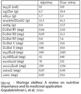 වියලි මුරුංගා කොළ පිටි ග්රෑම් 100 ක අඩංගු පෝෂණ ගුණය