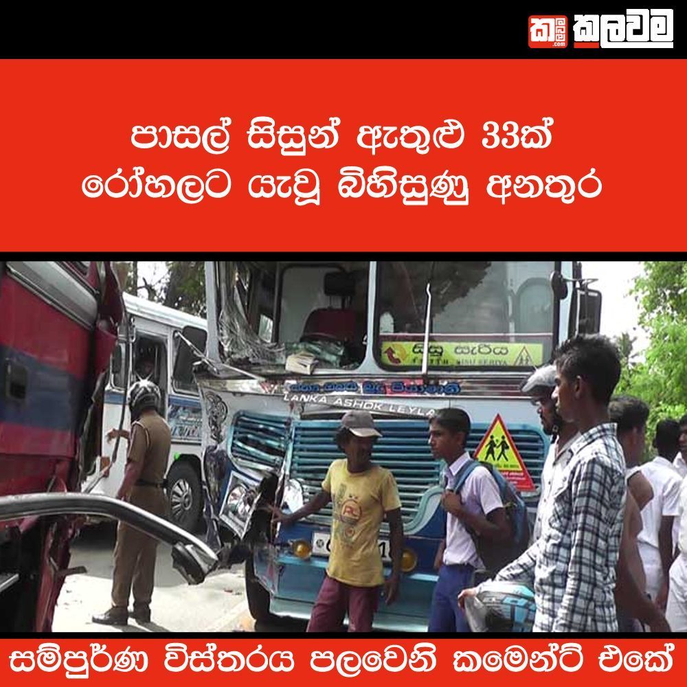 ඉන් තුවාල ලැබූ පාසල් 25 දෙනෙකු ඇතුළු 33 දෙනෙකු රෝහල්ගත කළ බව අප වාර්තාකරු පැවසීය.