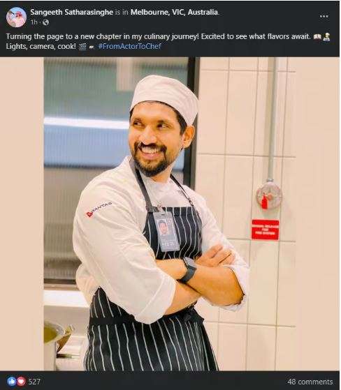 ඡායාරූපයක් එක්කම ඔහු එක්කාසු කළ සටහන කාටත් කියන්නේ එහෙම කතාවක්. ඔහු ඡායාරූපය බෙදාගෙන තිබුණේ, ‘From Actor To Chef’ යන්න විශේෂ කරමින්.