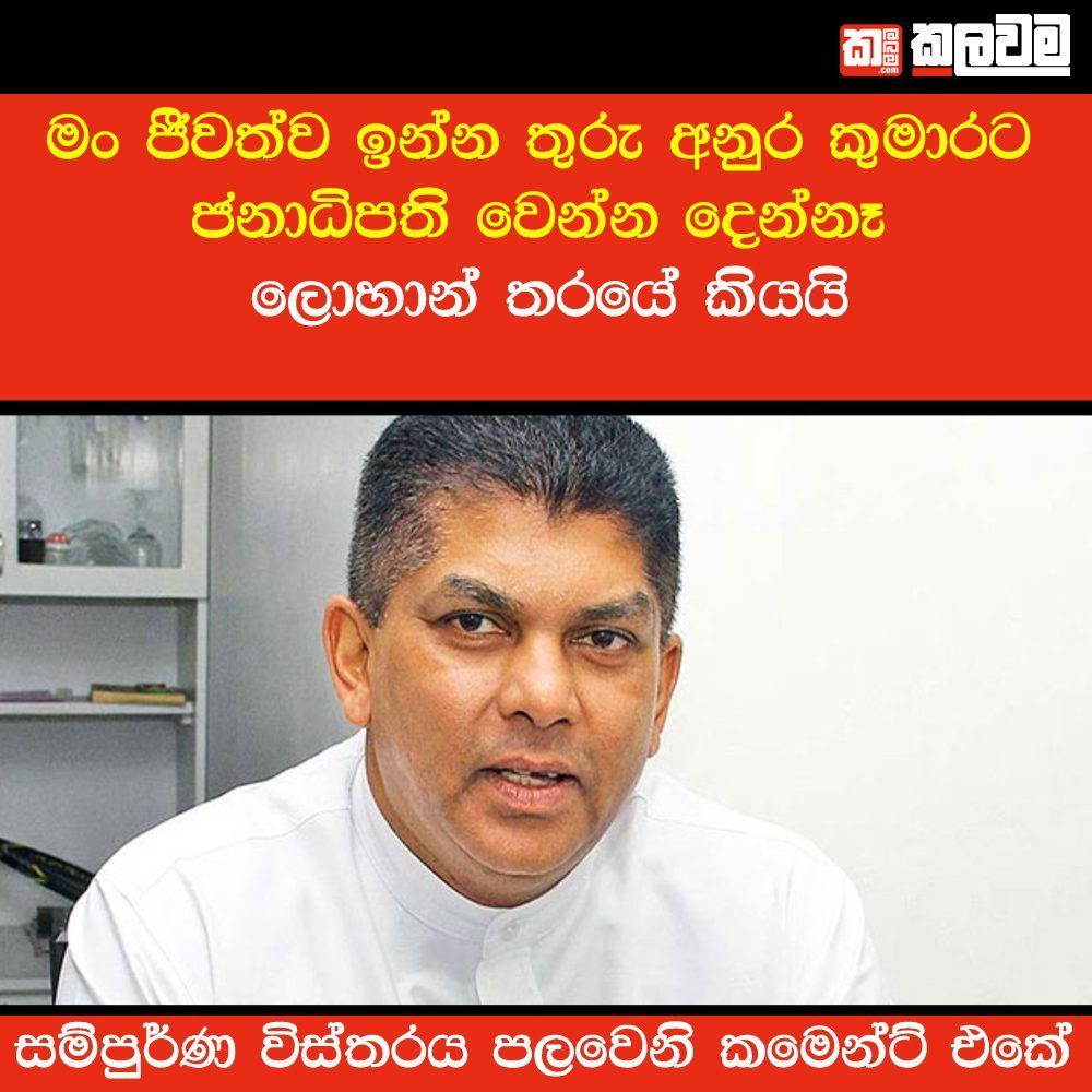 තමන් ජීවත්ව සිටිනා තුරු අනුර දිසානායක මහතාට මෙරට ජනාධිපති වීමට ඉඩ නොතබන පන රාජ්ය ඇමති ලොහාන් රත්වත්තේ මහතා සදහන් කරයි.