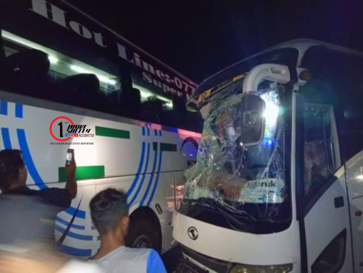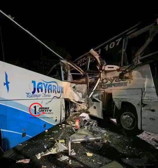 සුඛෝපභෝගී බස් රථ දෙකක් ගැටී රියදුරෙක් ජීවිතක්ෂයට – ජායාරූප මෙන්න