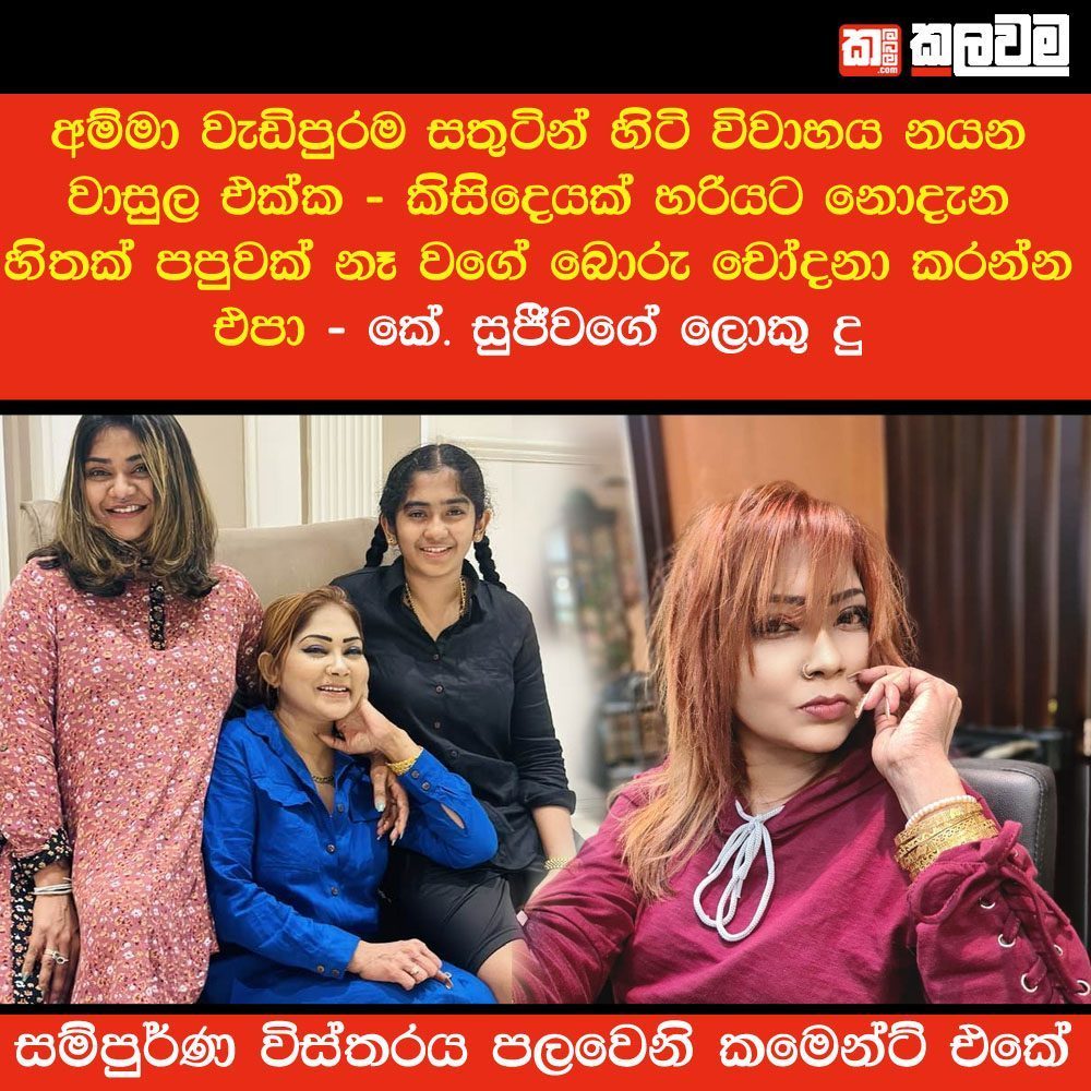 මං දන්නවා සමාජ මාධ්යවල පැතිරෙන බොරු ගොසිප්වලට රැවටිලයි ගොඩාක් අය අම්මට විවිධ චෝදනා කරන්නේ. ඒ අයට මං කියන්නේ අපි මෙච්චර අසරණ වෙලා ඉන්න වෙලාවක අපේ කිසිදෙයක් හරියට නොදැන හිතක් පපුවක් නෑ වගේ බොරු චෝදනා කරන්න එපා කියලා. මං අම්මා හින්දා කියනවා නෙවෙයි. එයා හරි හොඳ කෙනෙක්.