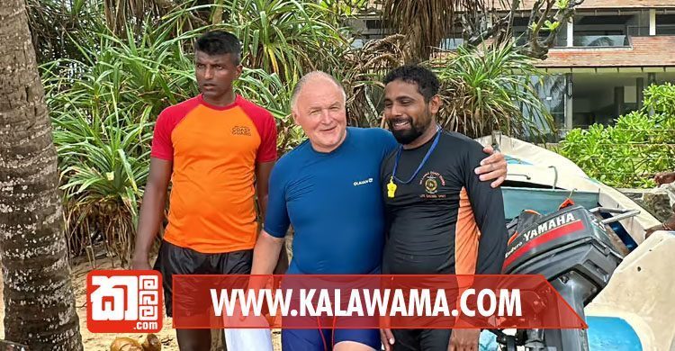 මේ ආකාරයට වෙරළ ආරක්ෂකයින් 06 දෙනෙක් විදේශිකයාව බේරාගැනීම සඳහා මුහුදට ගොස් තිබුණා.