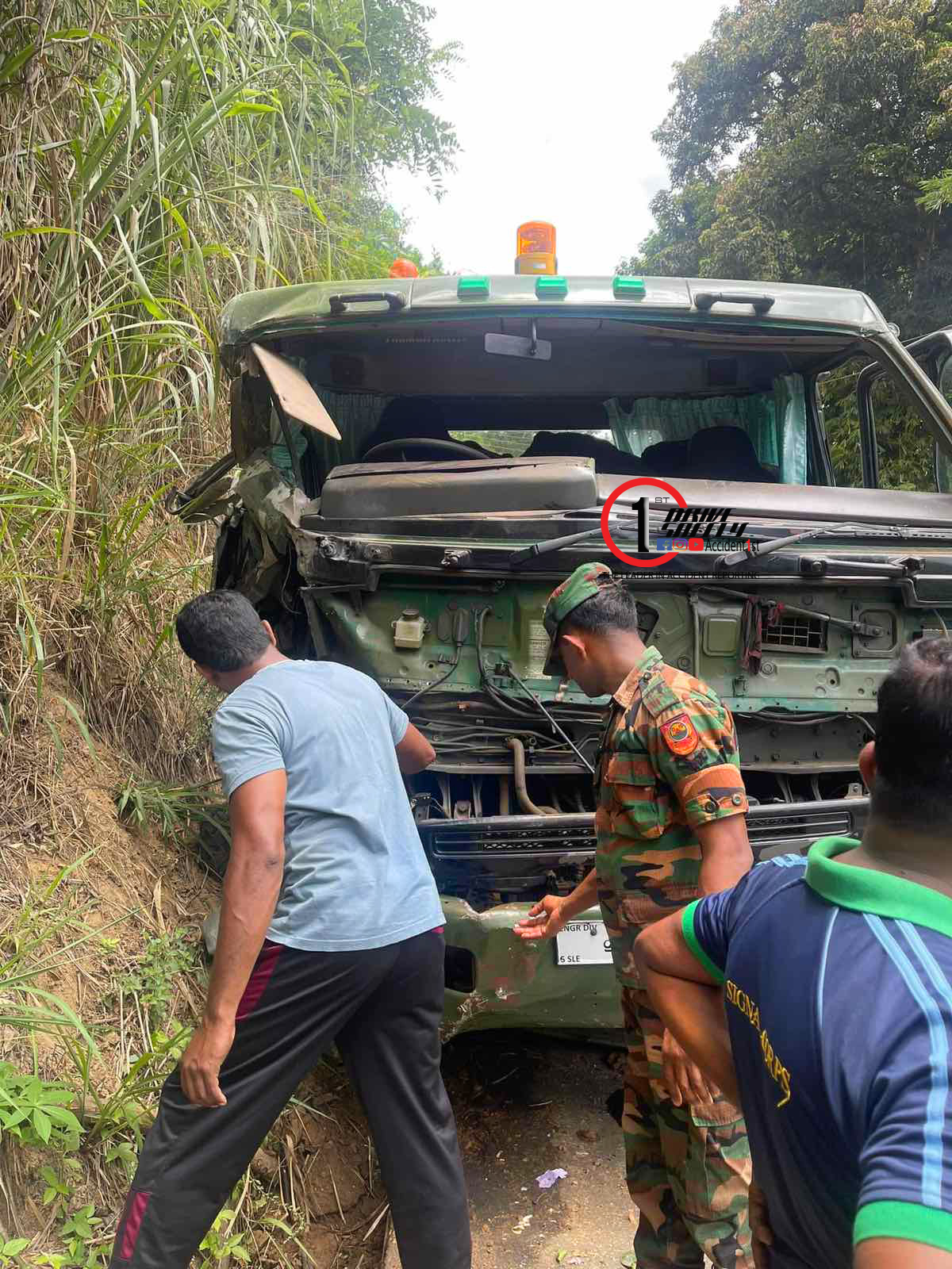 තිරිංග අක්රීය වූ යුධහමුදාව අයත් ප්රයිම් මුවර් රථයක් රියදුරාට පාලනය කරගැනීමට නොහැකිව ඉදිරියෙන් පැමිනි යතුරුපැදියක හා ත්රිරෝද රථයක ගැටීමත් සමග ත්රිරෝදරථය ප්රයිම් මුවර් රථයට හා පසෙක ඇති ගල් බැම්මට හිරවීයෑමෙන් මේ අනතුර සිදු වී තිබෙනවා.