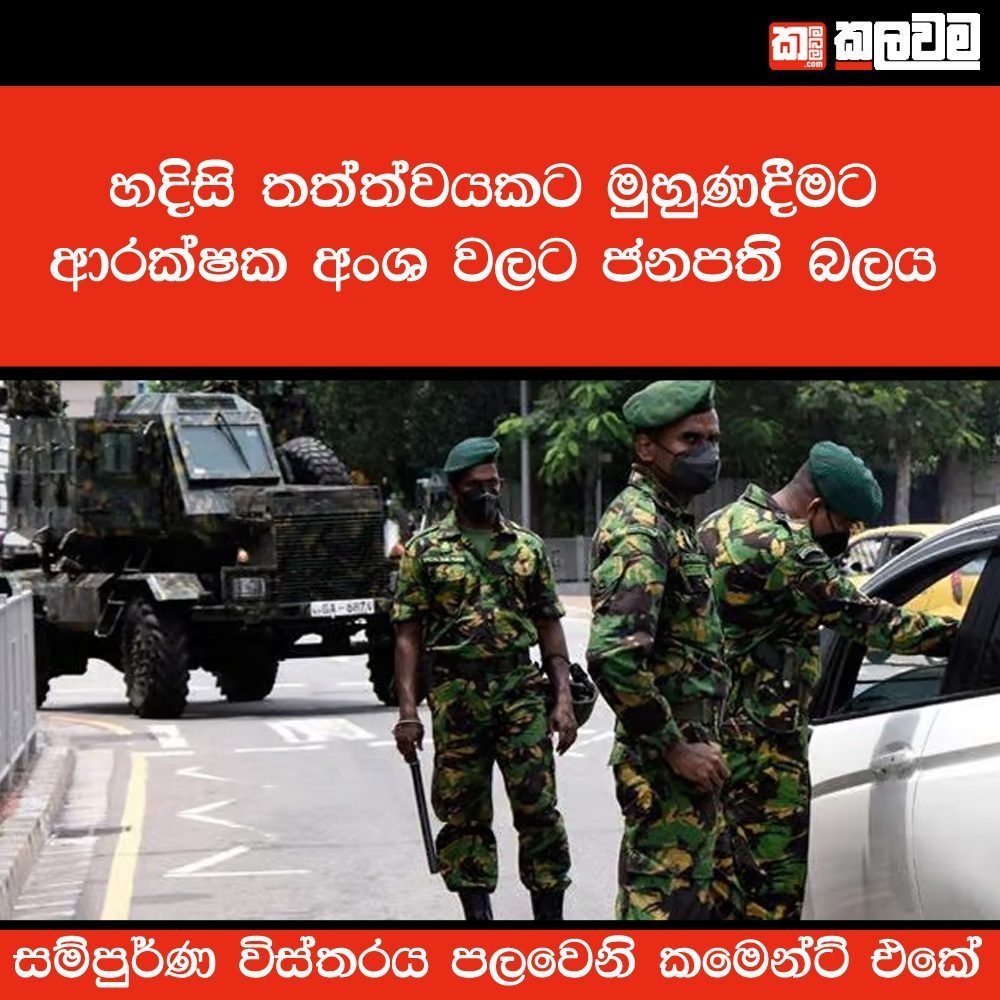 ඒ අනුව ඇතිවිය හැකි ඕනෑම හදිසි තත්ත්වයකදී පොලිසියේ සහායට හමුදාව යෙදවීම හා හදිසි තත්ත්වයකදී හමුදාවට බලතල භාවිත කළ හැකි ආකාරය පිළිබඳව නීතිපති උපදෙස් ගැනීමට ද පියවර ගෙන ඇති බවයි වාර්තා වන්නේ.