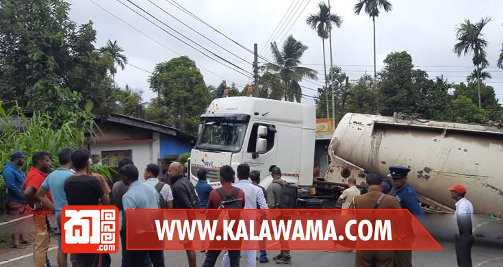 ධාවනය වෙමින් තිබු කන්ටෙයිනර් රථයේ රියදුරා කෙටි වංගුවක් ගැනිමත් සමග පසුපස ටැංකි කොටසේ රෝද කිහිපයක් මාර්ගය අභියස පිහිටි කාණුවකට වැටිමෙන් ටැංකි කොටස මාර්ගය හරහා අවහිර විම හේතුවෙන් රථ වාහන ගමනා ගමනය ඇණ හිට තිබුණි.