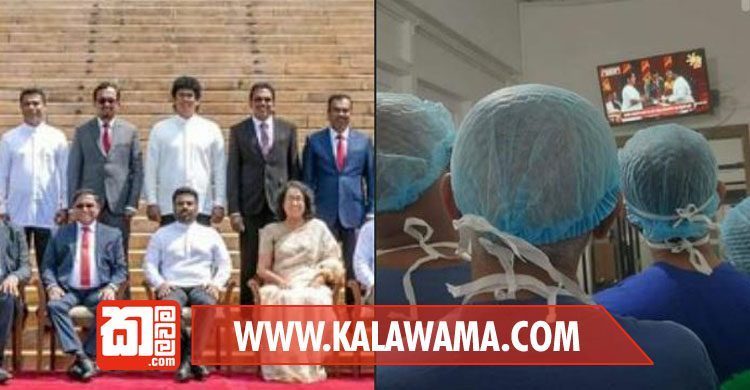 දෙවන පින්තූරයෙ ඉන්නෙ ඔපරේෂන් තියටර් එකක් ඇතුලෙ වෛද්යවරු ටිකක් අමාත්ය මණ්ඩලය දිවුරුම් දෙන එක බලන එකක්…