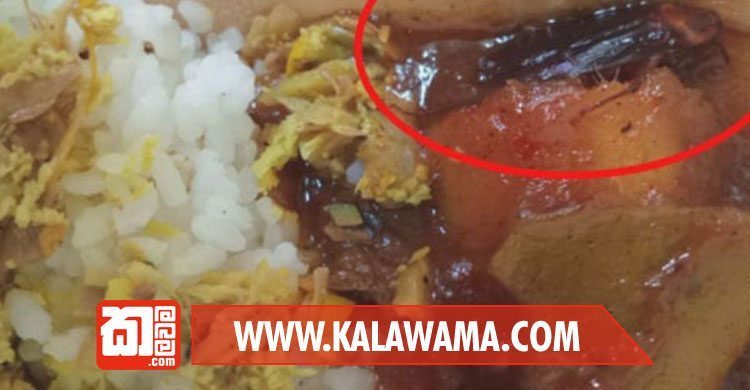 නැගෙනහිර බහලුම් පර්යන්තයේ සේවය කරන සේවකයකු පසුගිය 12 වැනිදා රාත්රී කුස්සියෙන් ලබාගත් ආහාර පාර්සලයේ මෙම මියගිය කැරපොත්තා සිටි බව ද සේවකයෝ කීහ.
