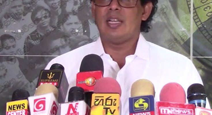 ඒ, එම අමාත්යාංශයේදී රතු කැකුලු සහල් හිගය සම්බන්ධයෙන් මාධ්ය වෙත ප්රකාශයක් කරමින්.