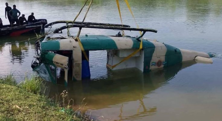 හමුදා සෙබළුන් 06 දෙනෙකුට මරු කැඳවමින් මාදුරුඔය ජලාශයට වැටුණු ශ්රී ලංකා ගුවන් හමුදාවට අයත් බෙල් 212 වර්ගයේ හෙලිකොප්ටර් යානය ගොඩ ගැනීමේ මෙහෙයුම් මේ වන විට ආරම්භ කර තිබේ.