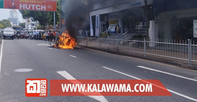 කොළඹ නගර සභාව ආසන්නයෙන් ගමන් ගත ත්රිරෝද රියක් හදිසියේ අද දහවල් ගිනි ගැනීමකට ලක් විය.