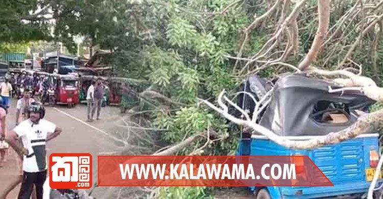ගස කඩා වැටීමෙන් අසල පිහිටි ත්රී රෝද රථ 02කටද හානි සිදුව ඇත.