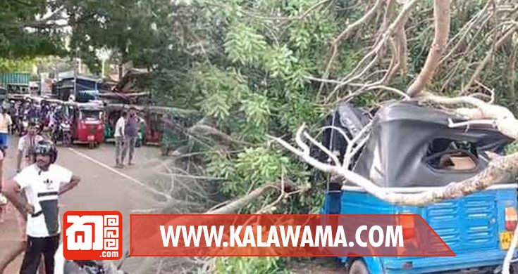 ගස කඩා වැටීමෙන් අසල පිහිටි ත්රී රෝද රථ 02කටද හානි සිදුව ඇත.