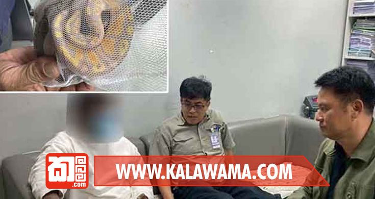 බැංකොක්හි සුවර්ණභූමි ගුවන්තොටුපොළේදී මෙම ශ්රී ලාංකිකයා අත්අඩංගුවට ගෙන ඇති අතර සැකකරු ඔහුගේ යට ඇඳුම් තුළ සඟවා මෙම “Ball pythons” නැමති සර්ප විශේෂය එරටින් පිටතට රැගෙන යාමට තැත් කර ඇති බව වාර්තා වේ.