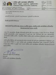 ඇයගේ ඡායාරූපයක් මාධ්ය වෙත නිකුත් කරමින්, ළමාරක්ෂක අධිකාරිය ඉල්ලා සිටින්නේ, මෙම දැරිය පිළිබඳ යම් තොරතුරක් වේ නම් ඒ් පිළිබද තොරතුරු 011 2 74 89 11 යන දුරකතන අංකයට හෝ ජාතික ළමාරක්ෂණ අධිකාරියේ ළමා උපකාරක ඇමතුම් අංකය වන 1929ට දැනුම් දෙන ලෙසයි.