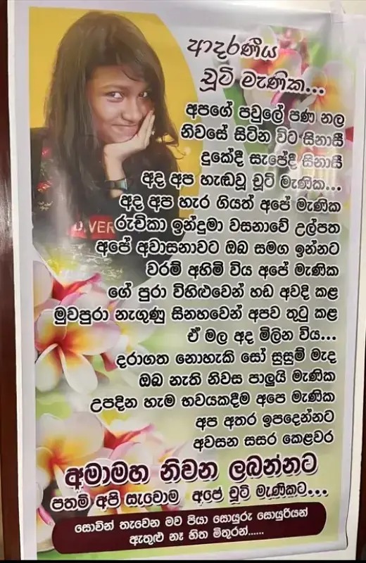 හෝමාගම, මහින්ද රාජපක්ෂ ජාතික පාසලේ 11 වන ශ්රේණියේ ඉගෙනුම ලැබූ රුචිකා ඉන්දුමා අධිකාරී නම් 15 හැවිරිදි ශිෂ්යාව, මෙවර සාමාන්ය පෙළ විභාගයට සූදානම් වෙමින් සිටියදී 2025 ජූලි මස 30 වන දින සියදිවි නසාගෙන තිබුණේ පාසලෙන් එල්ල වූ බව කියන දැඩි මානසික පීඩනය හේතුවෙනි. ඇය 2022 වසරේදී 8 වන ශ්රේණියට මෙම පාසලට ඇතුළත් වී ඇත්තේ අනාගතය පිළිබඳ අපේක්ෂා රැසක් සිත දරාගෙනය. තම විෂය කරුණු පිළිබඳ මනා දක්ෂතාවක් දැක්වූ ඇය, බාහිර උපකාරක පන්ති සඳහා යොමු නොවූ අතර, 11 වන ශ්රේණියට පා තැබීමත් සමඟ ඇගේ ජීවිතයේ කණගාටුදායක පරිච්ඡේදයක් ආරම්භ වී තිබේ.