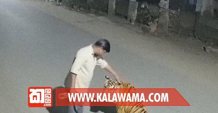 ඔහු ව්යාඝ්රයා වෙත කෙළින්ම ඇවිද ගියේය. ව්යාඝ්රයා, එහි තැඹිලි සහ කළු ඉරි සහිත විශාල සිරුර සමඟින්, සන්සුන්ව අවධානයෙන් සිටිමුත් ඇස් අඳුරේ දිදුලමින් තිබුණි.