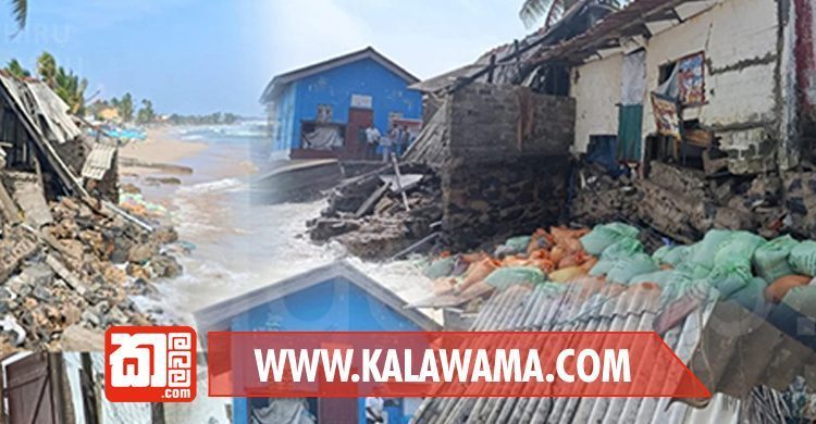 කාලගුණයේ වෙනස් වීමත් එක්ක රළු වුණු මුහුද, දැන් වෙරළේ තියෙන ධීවර වාඩි සහ නිවාස එකින් එක බිලිගන්න පටන් අරන්.