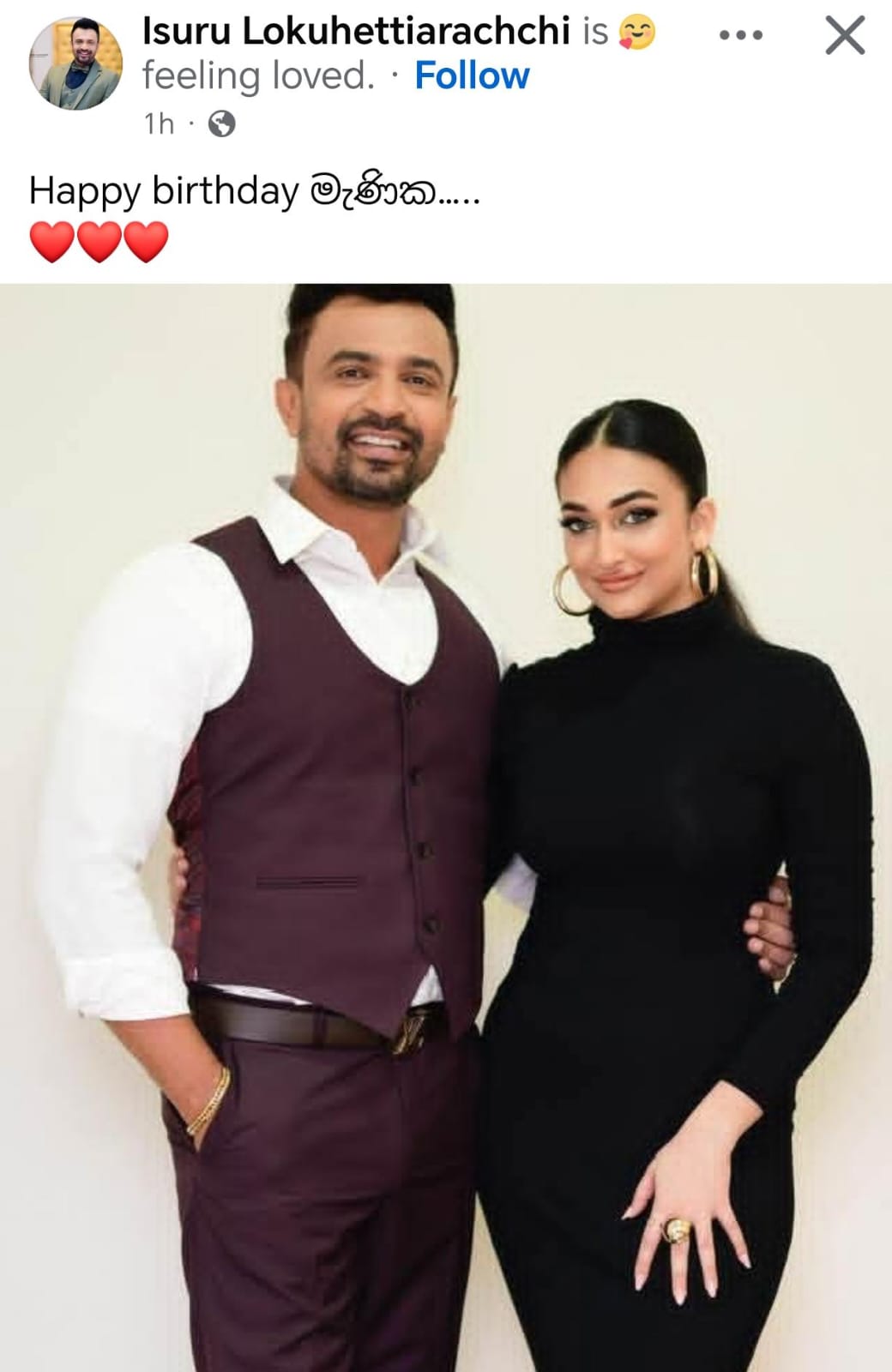 ඔවුන් දෙදෙනාගේ ආදරණීය ඡායාරූපයක් එක්ක “Happy birthday මැණික” කියලා ඇය වෙනුවෙන් සුබපැතුමක් එක්කරන්න මෙන්න ඔහු අමතක කරලා තිබුණේ නැහැ..