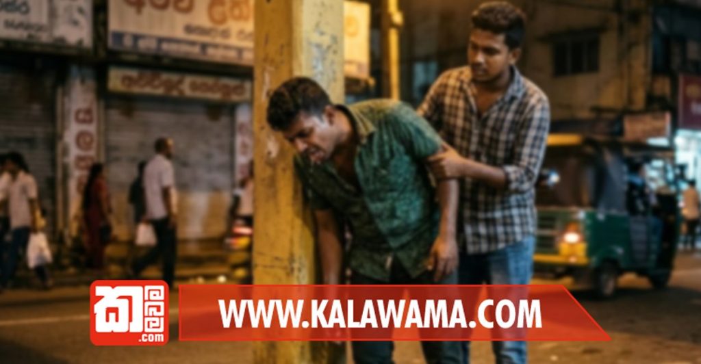 ටික දුරක් යන විට එක් මිතුරකුට මධුවිතවල ක්රියාකාරීත්වය වැඩි වීම හේතුවෙන් උදරය කලඹා දරාගත නොහැකි තත්වයක් ඇති වූයෙන් පාර අයිනේ තිබූ විදුලි කණුවක් මුලට ‘‘ඕක්” ගා දැමුවේ රාත්රි ආහාරය සඳහා ගත් සියල්ල කිසිවක් ඉතුරු කර නොගෙනයි.