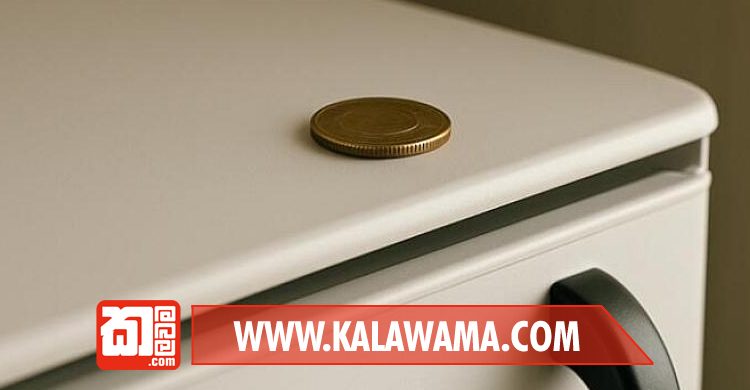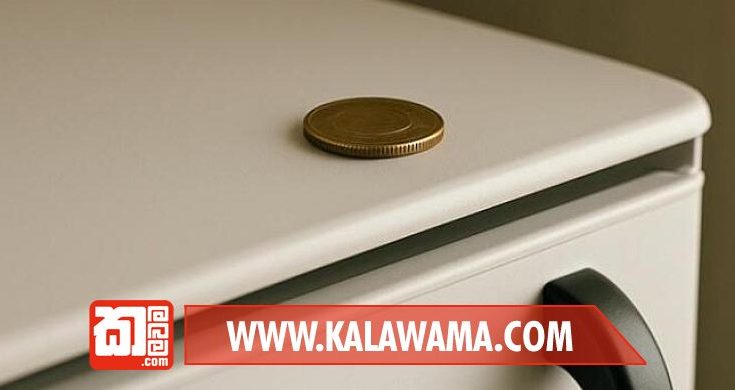 පියවර 2 (සීල් එක ටෙස්ට් කිරීම): ෆ්රිජ් එකේ දොර ඇරලා, මේ කාසිය හරි නෝට්ටුව හරි දොරේ රබර් පටියට තියලා, කාසියෙන් බාගයක් එළියේ තියෙද්දී දොර තදින් වහන්න.