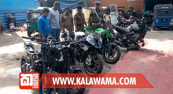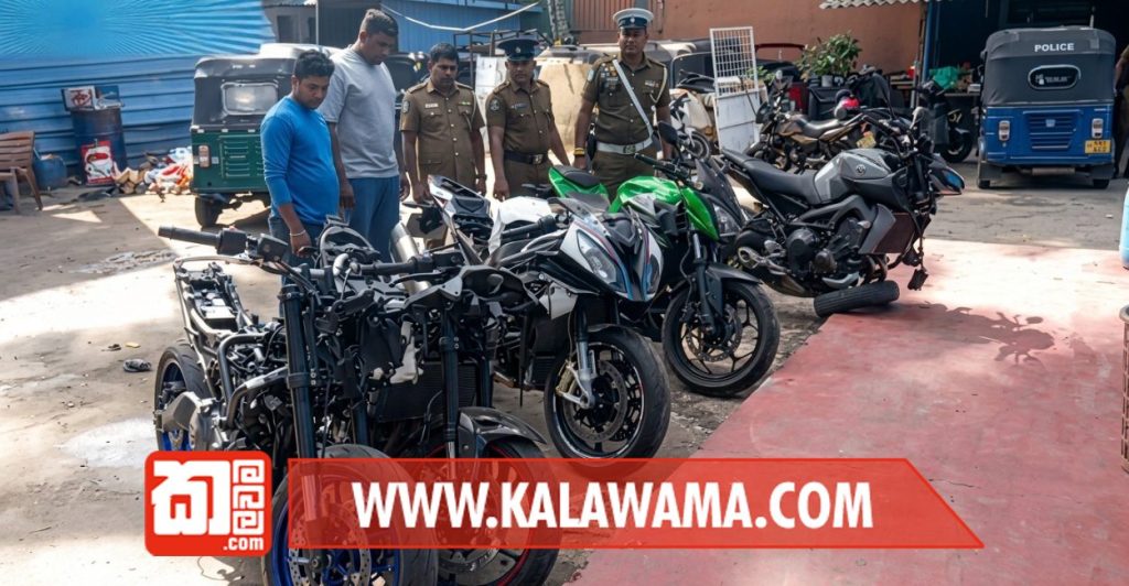 මෙරට ලියාපදිංචි කිරීමට නොහැකි රුපියල් කෝටි 02 ආසන්න වටිනා අධිබලැති යතුරුපැදි පහක් එකලස් කරමින් සිටි ගරාජ් හිමියකු අත්අඩංගුවට ගත් බව පිළියන්දල පොලිසිය සඳහන් කරයි.
