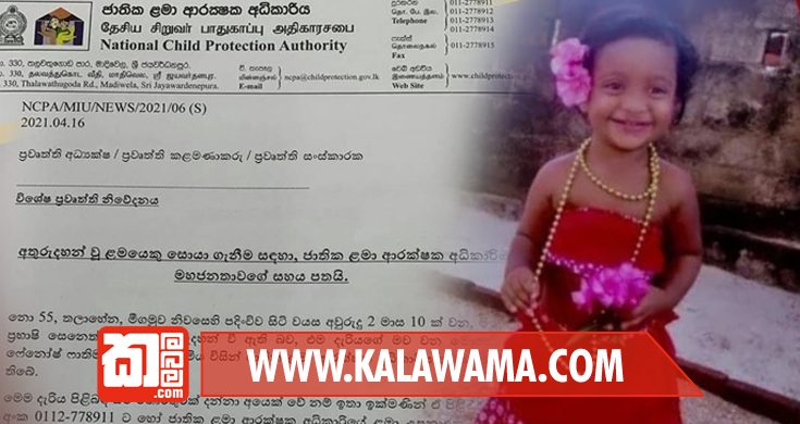 මෙම දැරිය පසුගිය මාර්තු මස 19 වනදා සිට අතුරුදන්ව ඇති බවට ඇගේ මව ජාතික ළමාරක්ෂක අධිකාරියට දැනුවත් කර තිබුණා.